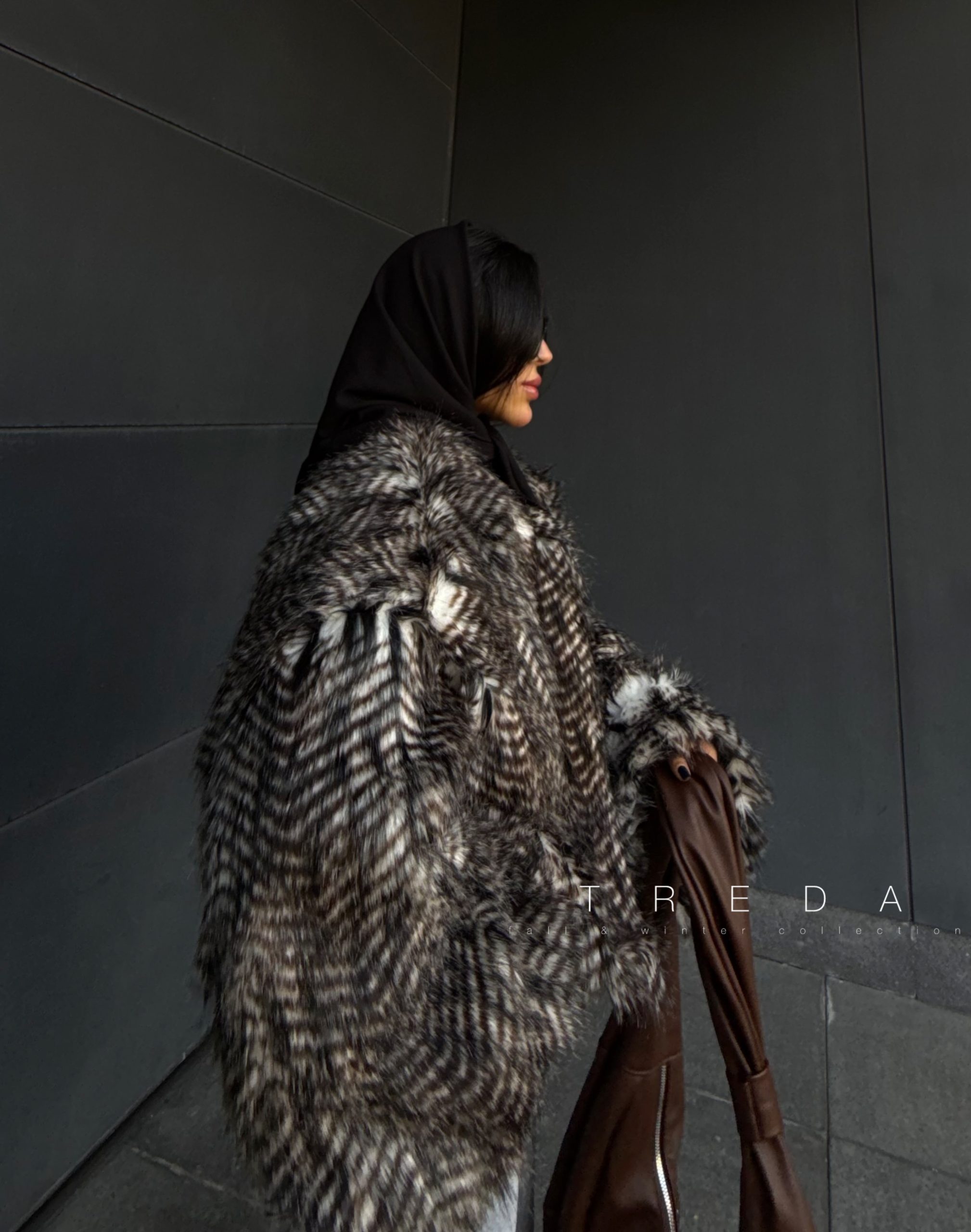 اورکت/پالتو Code : F 10 متریال : خز روسی طاووسی پرز بلند و حجیم – استردار قد موجود حدود ۵۵ –فری سایز